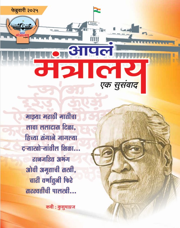 आपलं मंत्रालय Aaple Mantralay February 2025 LOW RES-1 (1).pdf आपलं मंत्रालय‘ गृहपत्रिकेच्या अंकामध्ये मंत्रालयातील विविध विभागाचे अधिकारी-कर्मचारी यांच्या कथा, कविता, स्वानुभव तसेच पाककला, भ्रमंती या विषयीचे लेख समाविष्ट करण्यात आले आहेत. शेअर करा : whatsapp facebook pinterest linkedin email print 133 views